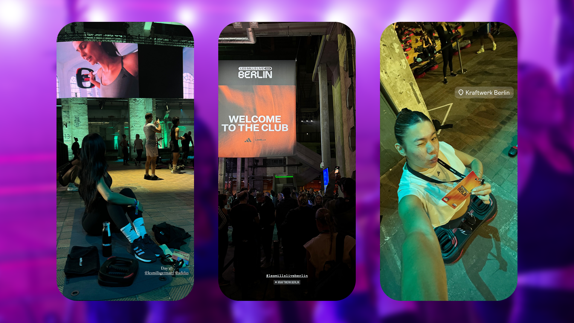 Over the weekend we brought together the three different worlds of Group Fitness, Live concerts and Berlin’s famous techno scene at one of Berlin’s biggest nightclubs – Kraftwerk. It was a fitness festival with serious nightclub energy.