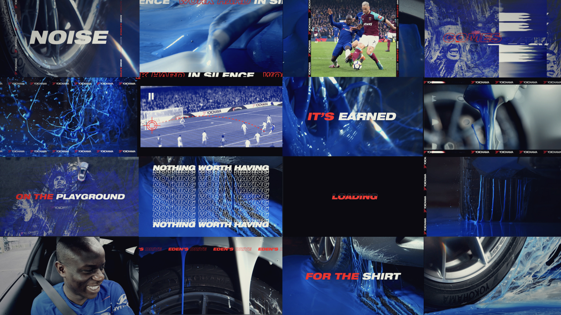 The contemporary animated typography is a visual metaphor of a tyre tread. It is always in motion and in a constant replicating cycle, just like the wheel and tyre of a moving vehicle.